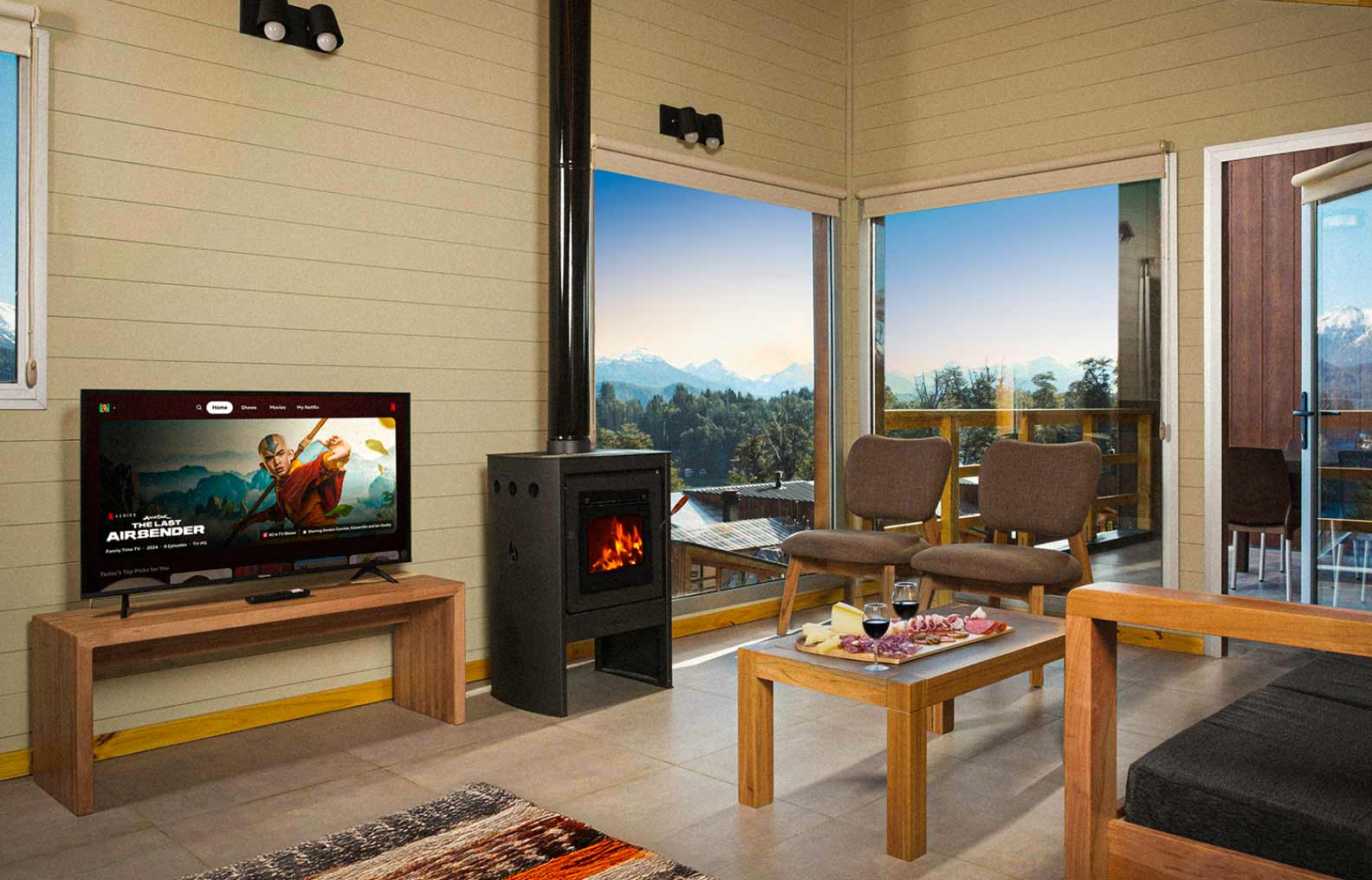 Montaña Resort un refugio patagónico frente al lago, con vistas que invitan a desconectarte de lo cotidiano y conectarte con lo que importa.